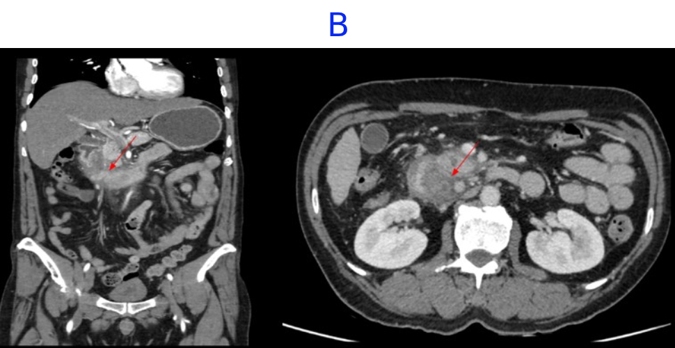 Ampullary or duodenal adenocarcinoma may also manifest as infiltrative soft tissue extending to the PDG and be difficult to differentiate from inflammation.
